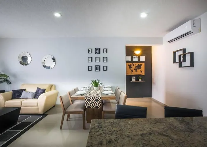 In Cancún gelegen, ist das Apartment Ferienwohnung Bungalow Maya En Casa Nomis Cancun eine Unterkunft mit 1 Schlafzimmern und kostenlosen Parkplätzen und einem Swimmingpool. Estadio Beto Ávila ist 3 km und Parque las Palapas ist 2 km von diesem Privatzimmer entfernt.
